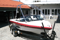 Motor: Corvette LS 1 / 89 Std. Baujahr: 2005 Zubehör: Persenning, Titan Tower III in Edelstahl poliert, Heizung mit 3 Ausgängen, 2 Paar versenkbare Klampen, Bow Lifting Eye, Tiefenanzeiger, Scarpa Plate, Flush Kit, Fahrersitz höhenverstellbar, Isotta Lenkrad und Schaltknopf, Bimini Top - Sonnenverdeck, 4 Lautsprecher, Edelstahl Unterwasserteile, Edelstahl Ruder